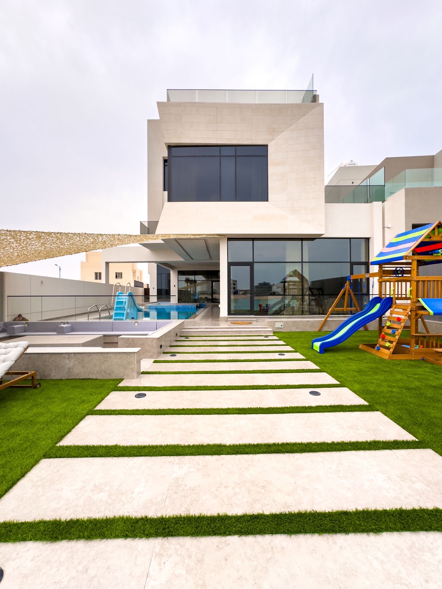 الدور الاول ٧ غرف نوم (٥ غرف ماستر بحماماتهم) + كاونتر تحضيري. عدد ٣ بلكونات مع جلساتهم